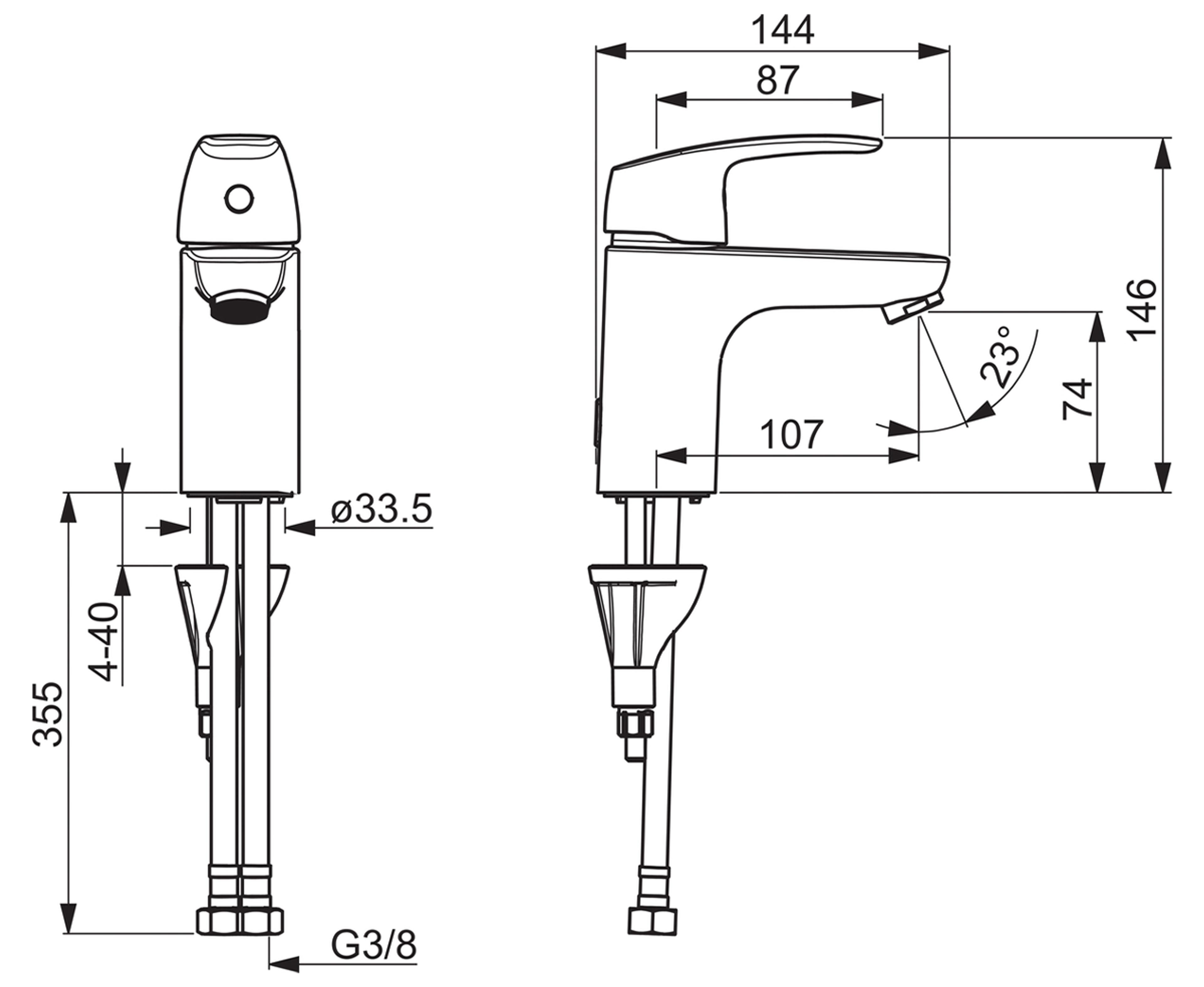 Servantkran med fast tut og perlator. Det er også innebygd alternative begrensninger for vanntemperatur og maksimal vannmengde. Pålitelig og slitesterk servantkran. Farge: Krom