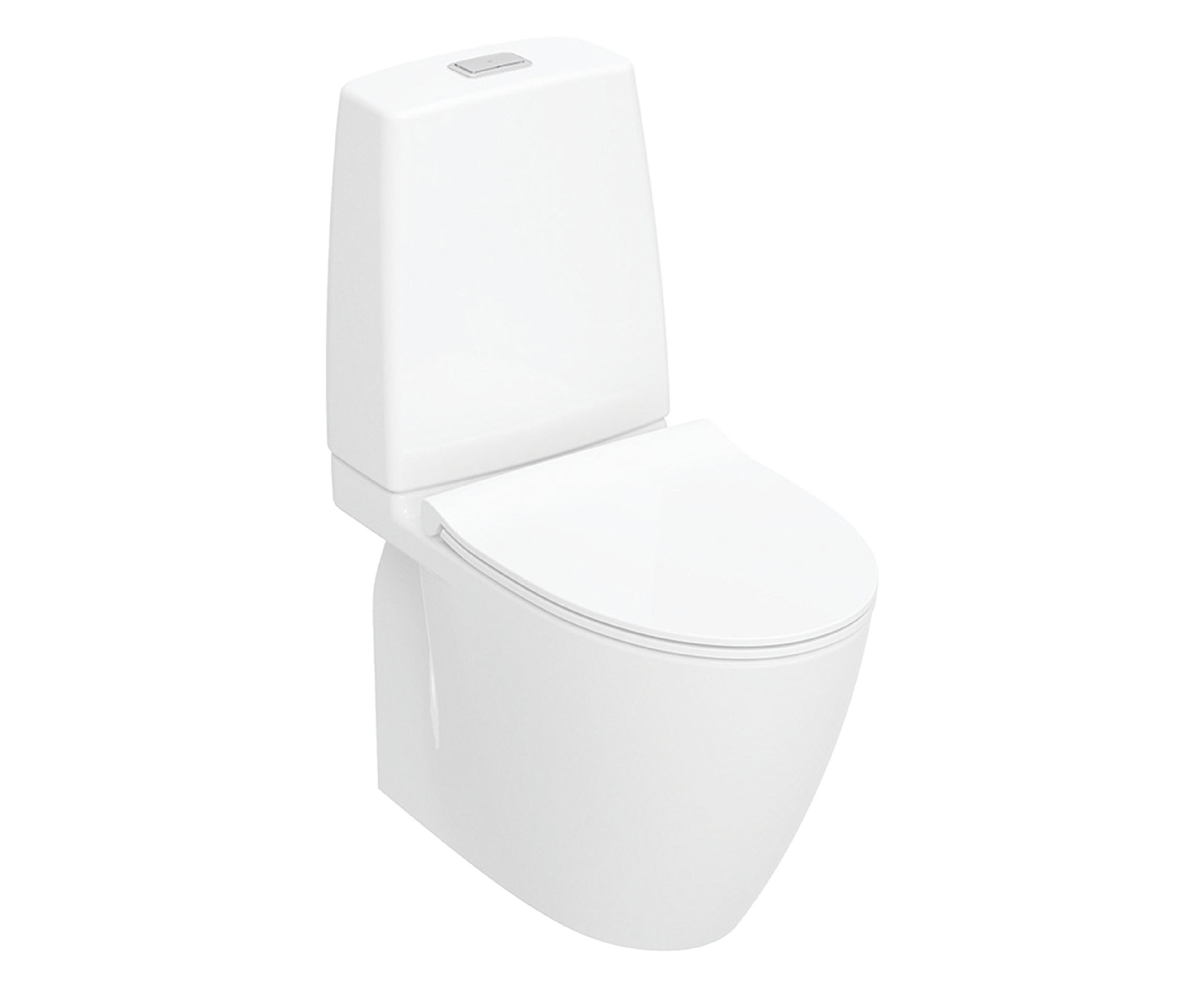 Et komplett gulvtoalett inkludert toalettsete, kraftfull og stillegående skyll for optimal hygiene og komfort. Rimfree® design uten skyllekant for enklere rengjøring, dobbel kondensfri sisterne og smart-glasur som hindrer smuss og belegg. Fresh WC gir frisk duft og rent vann ved hvert skyll. Vannbesparende dobbeltskyll på 4/2 liter.