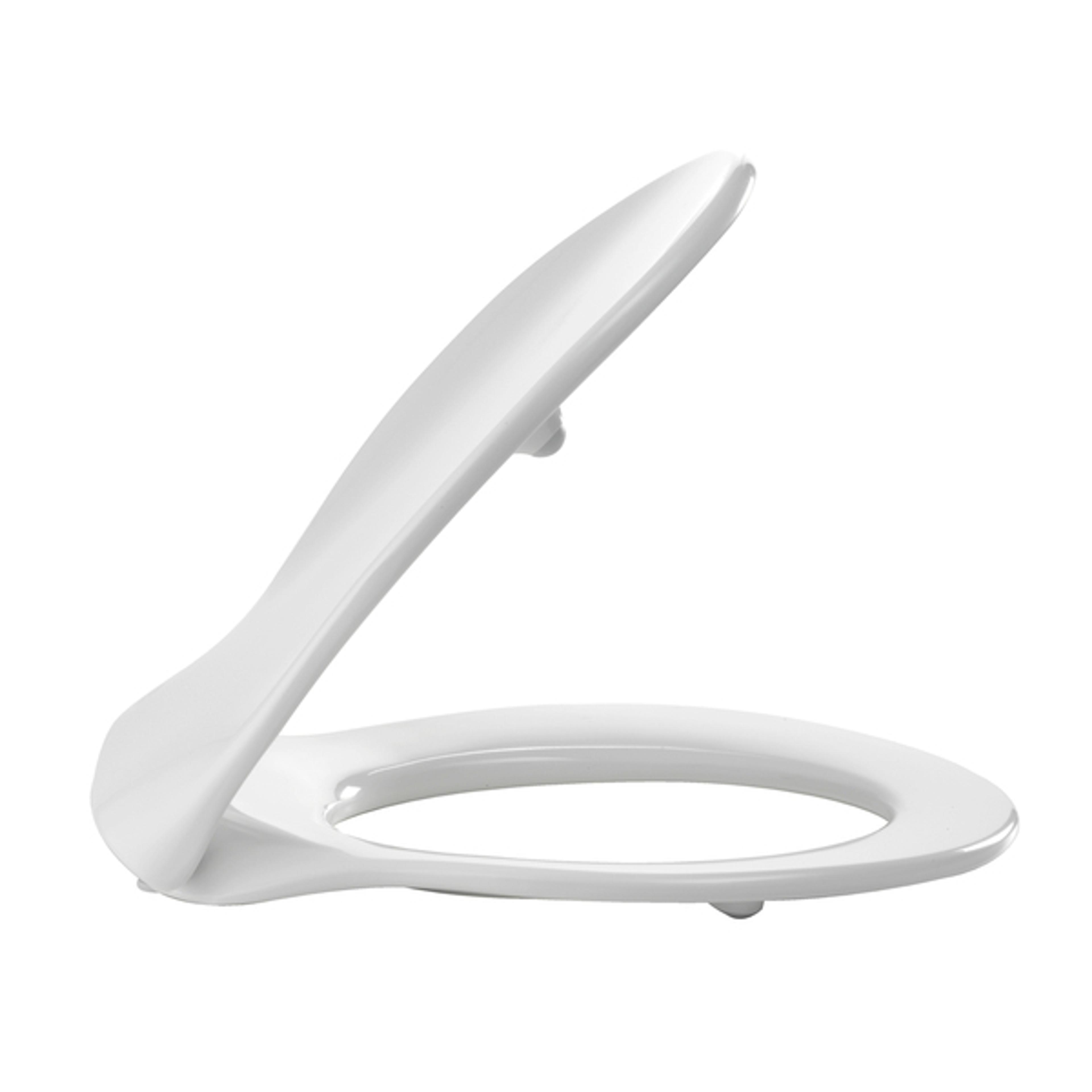 PRESSALIT toilettsete med lav, modell "Raja", av gjennomfarget hardplast inkl. BM5 universalbeslag til lift-off i rustfrit stål. - innebygget soft close funksjon - senteravstand: 105-185 mm - belastning - ringsete 300 kg - 10 års leverandørgaranti