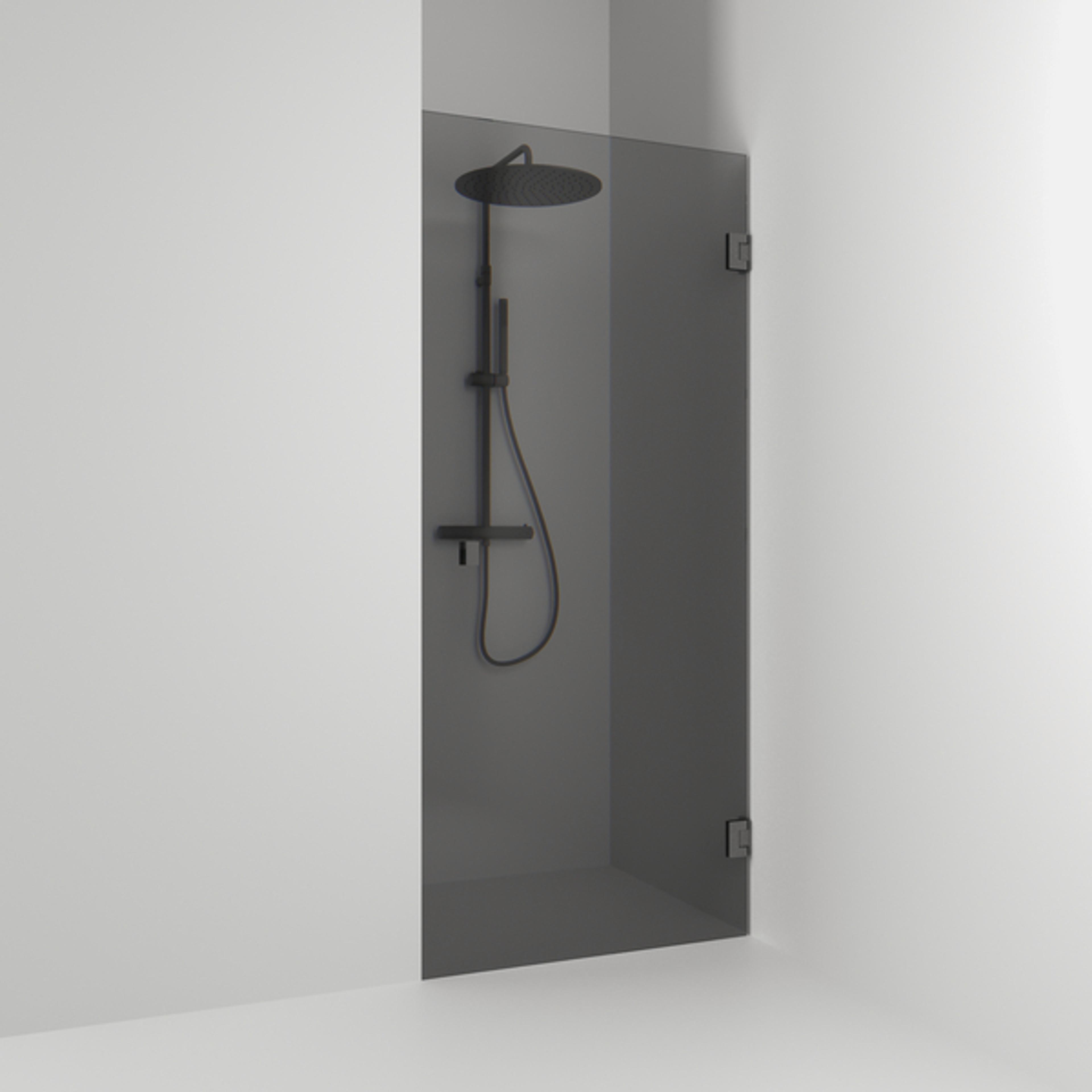 For deg som allerede har tre vegger og har tenkt å bygge en nisjedusj. De store glassflatene gir et lett og luftig inntrykk, og dessuten blir det lett å gjøre rent. Håndtak, hengsler, stag og gulvfeste forsterker helhetsinntrykket. 8mm herdet sikkerhetsglass.