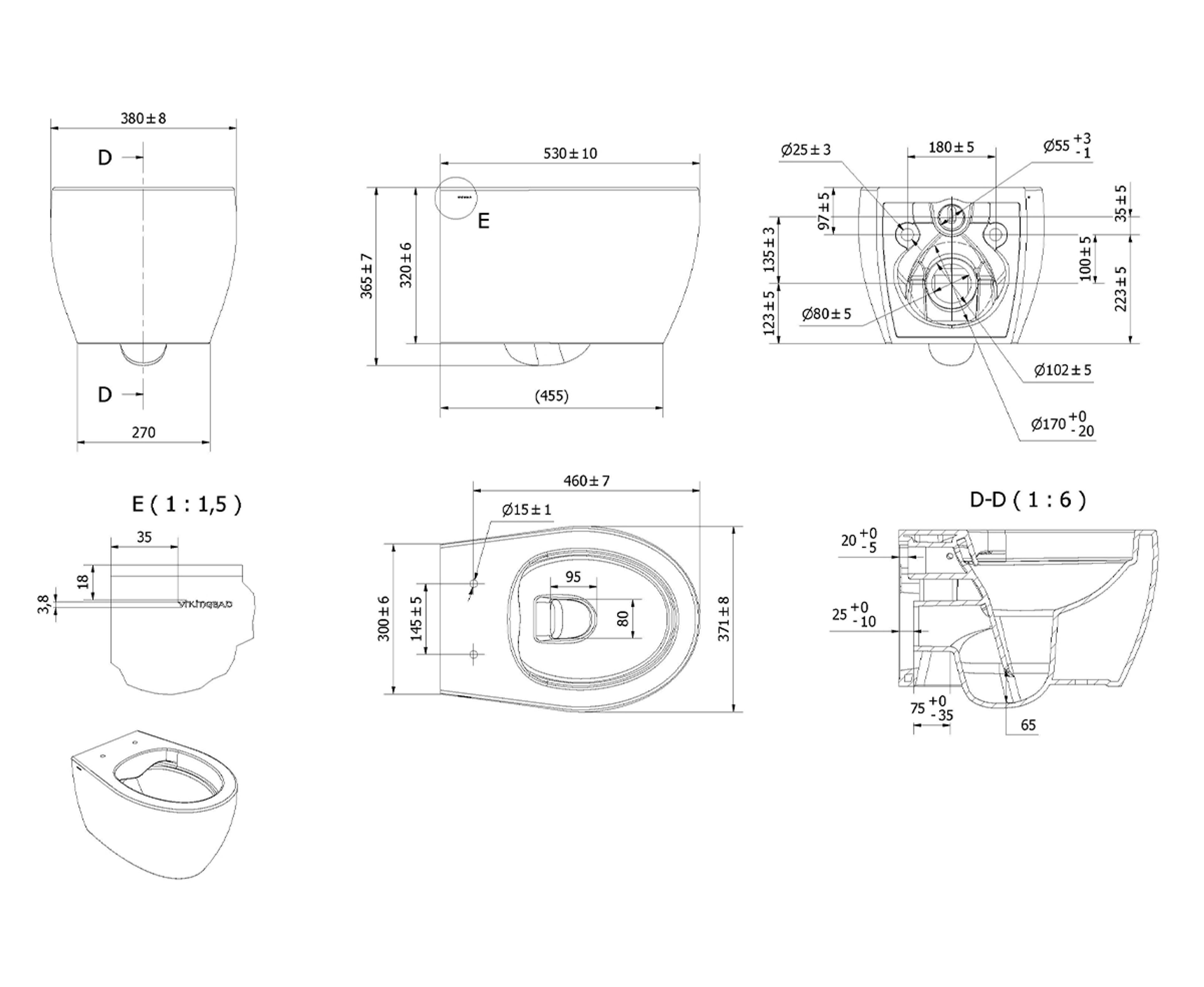 Vegghengt toalett med åpen spylekant og solid toalettsete med Soft Close og Quick Release. Soft Close funksjonen demper lyd og fart ved lukking av sete. Enkel montering og skjult oppheng. Farge: hvit matt