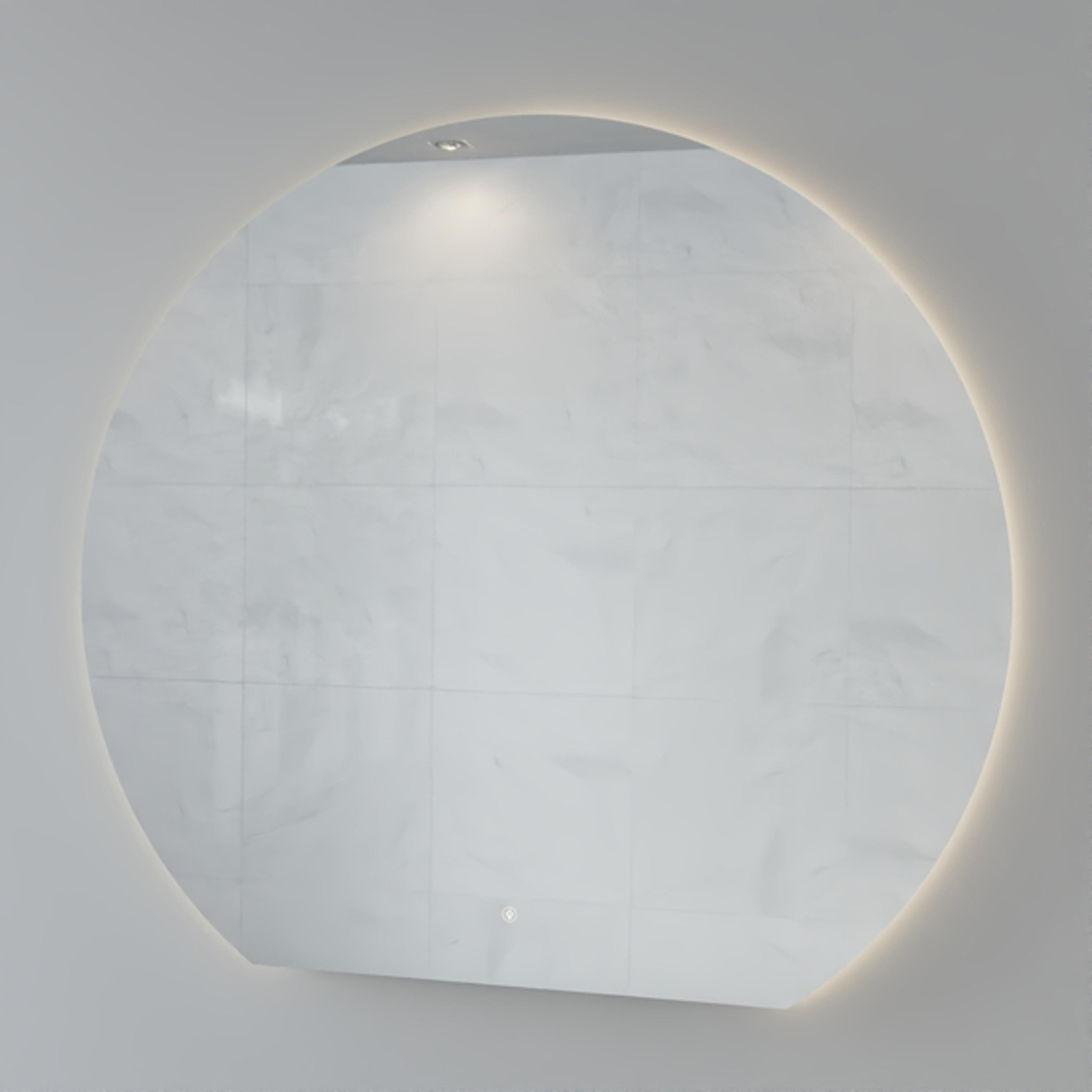 Voe 140cm speil m/LED er vårt unike speil i halvsirkelform kommer med en elegant bakgrunnsbelysning som skaper en dybde i badet. Speilets form gjør at det flukter med benkeplaten som skaper en harmoni mellom speil og møbel.