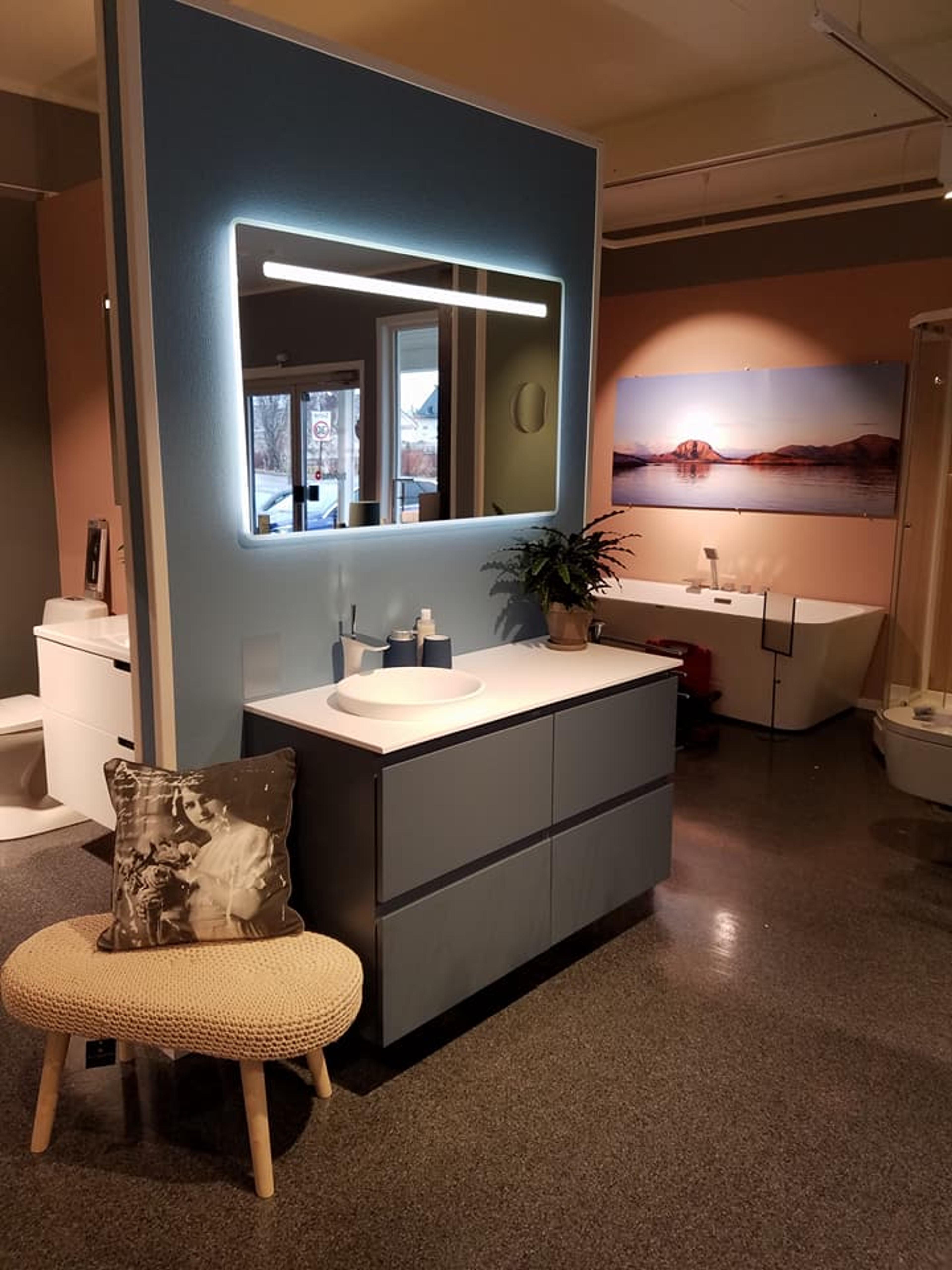Hos oss kan du se, kjenne og oppleve ulike design, materialer og funksjoner på nært hold. La deg inspirere av smarte løsninger, tidløse detaljer og moderne komfort – vi hjelper deg med å finne det perfekte baderommet for deg! Hele veien fra planlegging til ferdig bad.