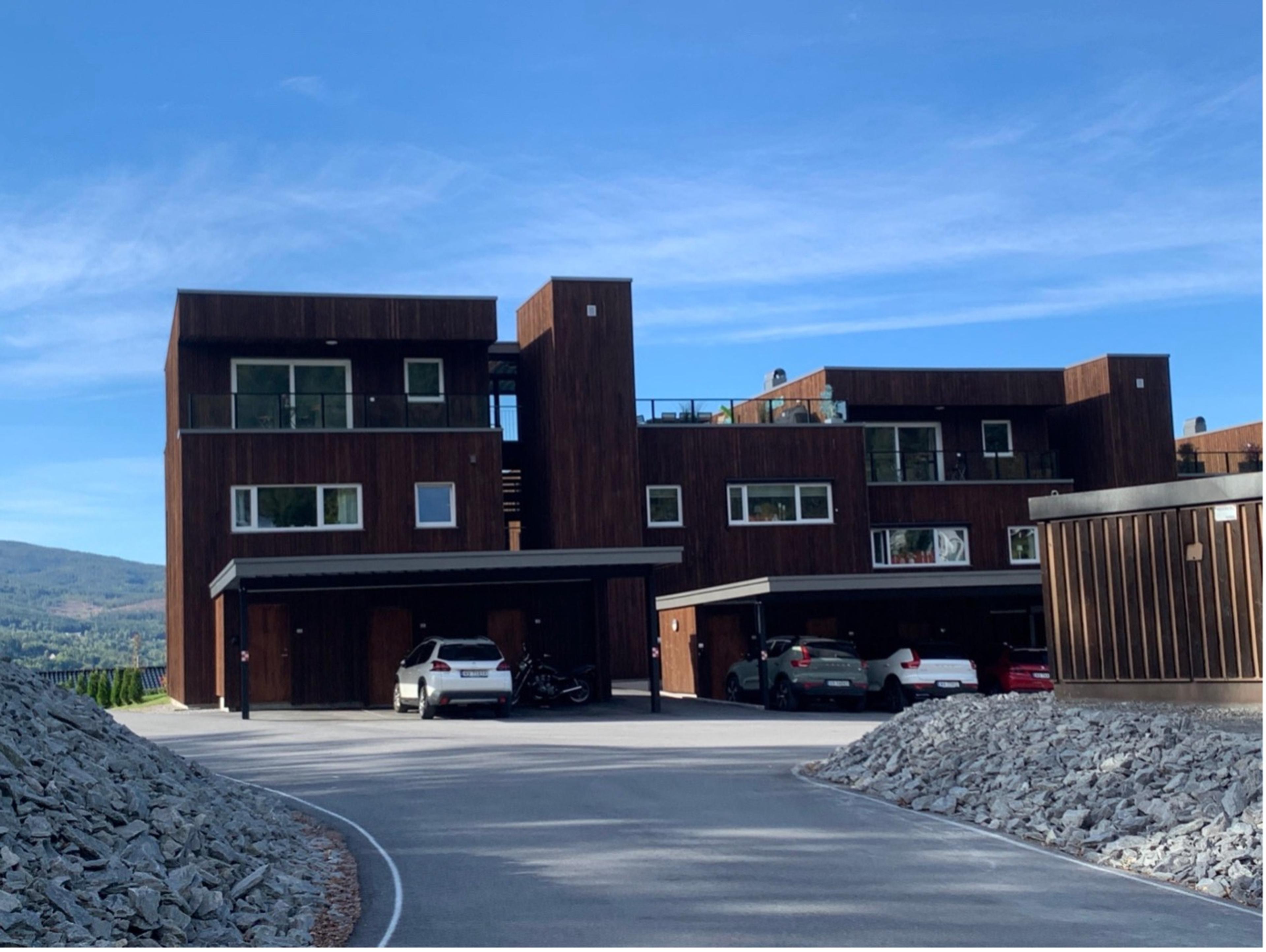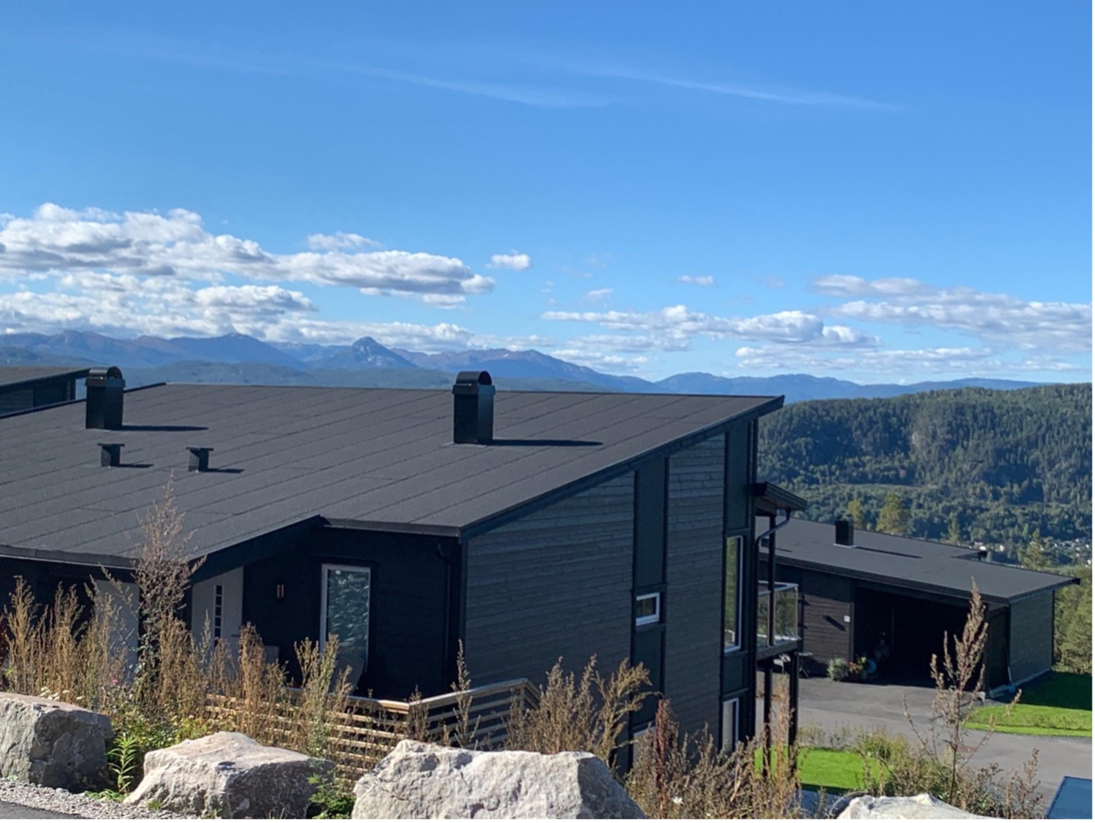 Leilighetsbygg med unik arkitektur med utsikt over Gaustatoppen, Hardangervidda og Rjukan. Vi har prosjektert og levert alt av sanitæranlegg. Utført i 2021.